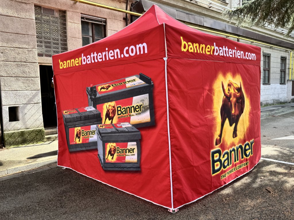 Střecha a volány jsou vyrobeny z voděodolné PES textilie s PUR zátěrem a nabízíme je s celoplošným sublimačním potiskem dle vašeho přání. Ať už potřebujete logo, texty nebo fotografie ve vysokém rozlišení, váš stan bude vždy nepřehlédnutelný.