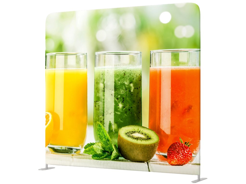 - pružný, perfektně vypnutý PES textilní tisk,